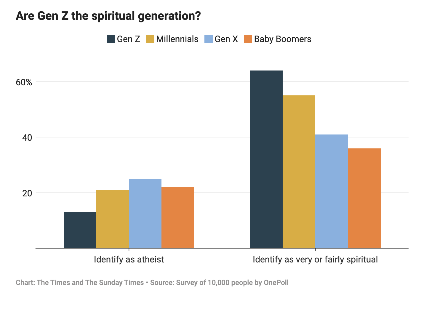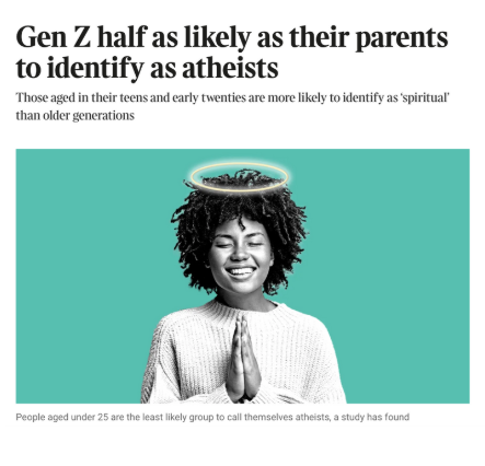 In particular, statistical data highlights that 18 to 24-year-olds in the UK (far less spiritual than the US) are significantly less likely to identify as atheists than their parents, reflecting a cultural shift throughout the Western World toward seeking spiritual experiences over mere belief systems.