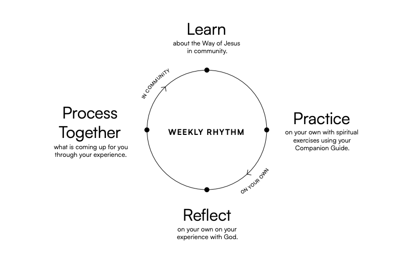 01 LEARN: Gather together as a community for an interactive experience of learning about the Way of Jesus through teaching, storytelling, and discussion. Bring your Guide to the session and follow along.